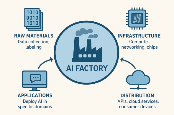 Vi kan se AI-fabrikken som en ny type produktiv infrastruktur – ikke bare produsere verktøy, men produsere selve intelligensen.